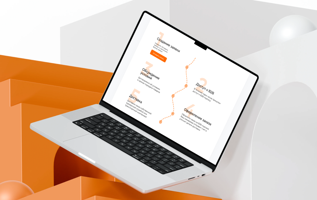 Простая визуализация процесса: заявка → консультация → договор → поставка. Минимум барьеров для начала сотрудничества.